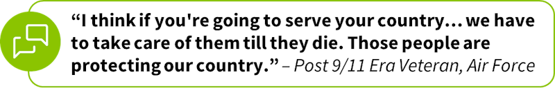 We also conducted a series of one-on-one in-depth qualitative interviews with veterans in our panel to hear their reflections on the poll results.