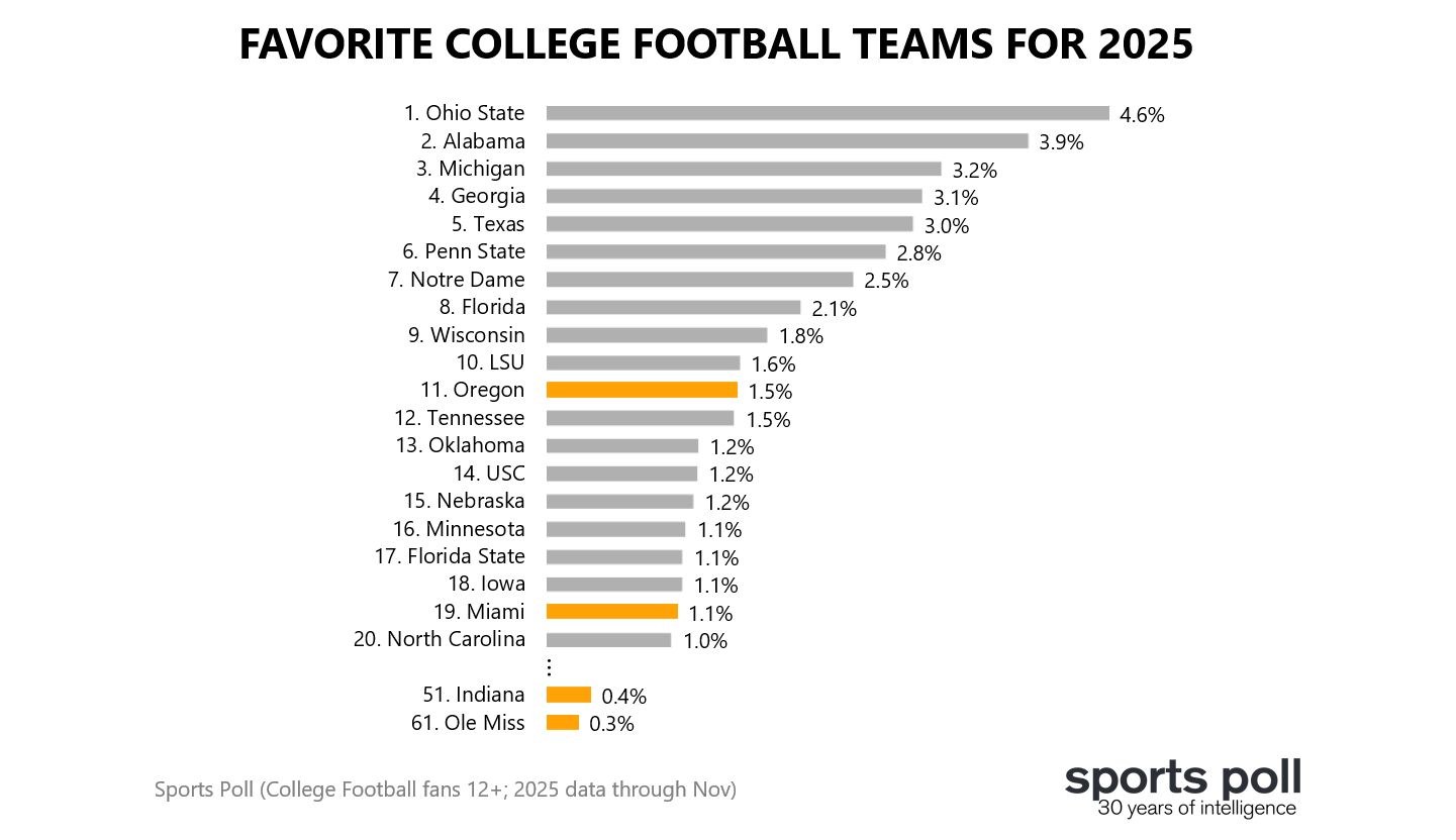 For more information on college football or the other 83 sports we track, please contact the Sports Poll team.