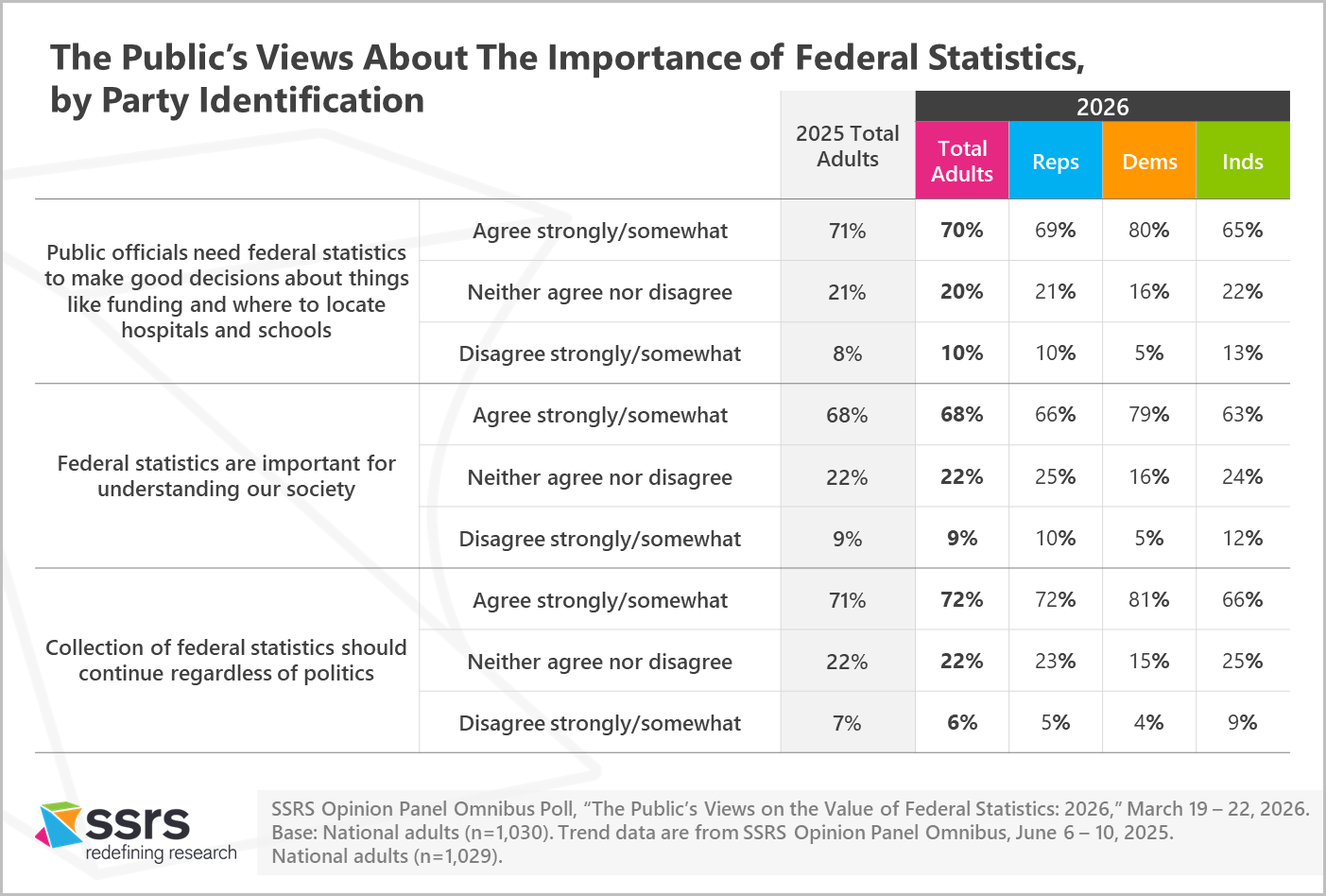 These findings are part of an SSRS Opinion Panel Omnibus poll conducted March 19 – 22, 2026, among a nationally representative sample of 1,030 adults aged 18 and older.